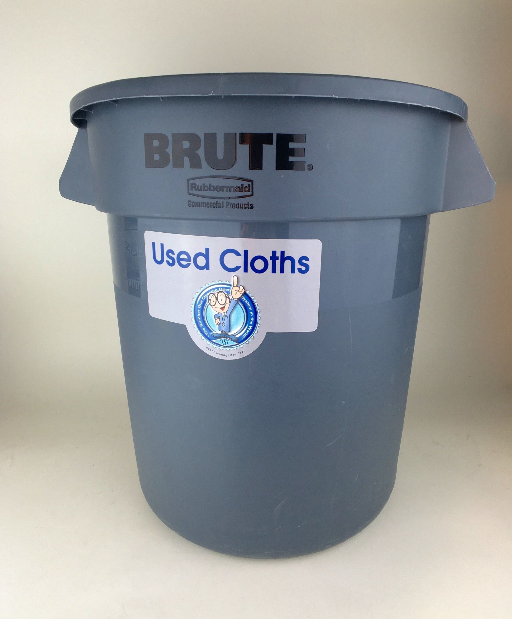 Part of the (OS1) Logistics system and the visually instructive workplace. For easy identification of where the used cleaning cloths are to be stored. We've replaced the old hard signage, with easy-to-use sticker labels that can be placed right onto your white or grey Brute containers.